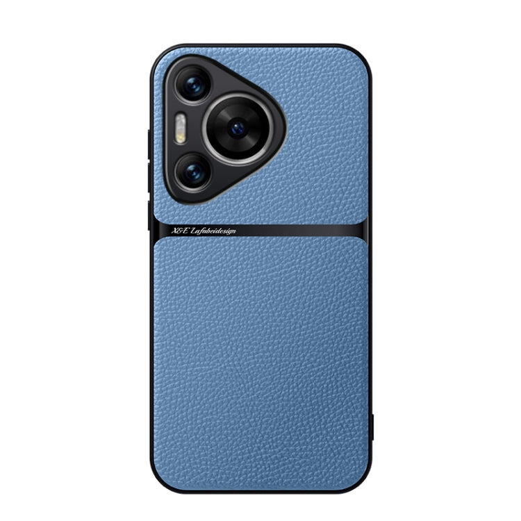 Funda para Teléfono Huawei Pura 70 Pro y Pura 70 Pro+ Piel de Lichi Cobertura Total Magnética Azul