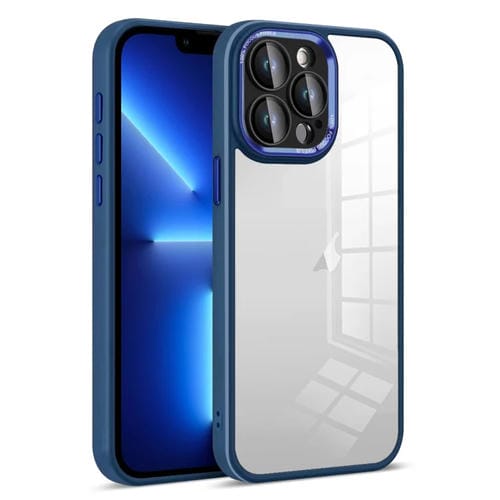 Funda para Teléfono iPhone 13 Pro Transparente con Película Protectora de Lente y Armadura Colorida (Azul)