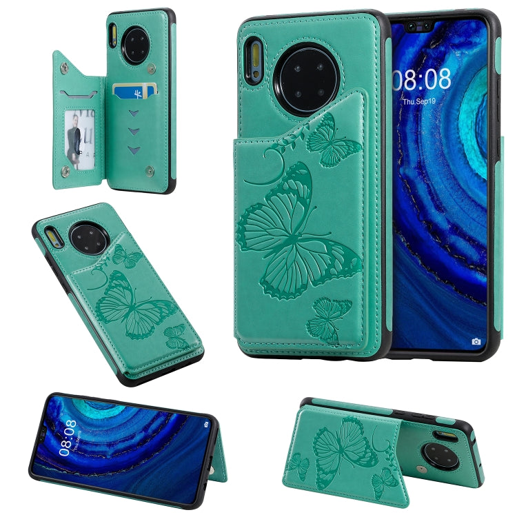 Funda Protectora Huawei Mate30 con Patrón de Mariposa, Soporte, Ranuras para Tarjetas y Marco de Fotos (Verde)