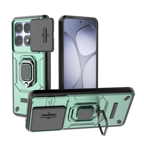 Funda Protectora de TPU + PC a Prueba de Golpes con Soporte para Redmi K70 Ultra Global Sliding Camshield (Verde)