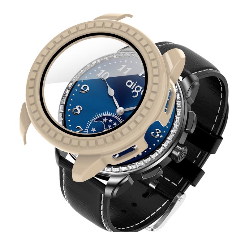Funda protectora para reloj inteligente Aigo M8 con película templada integrada para PC (blanco marfil)