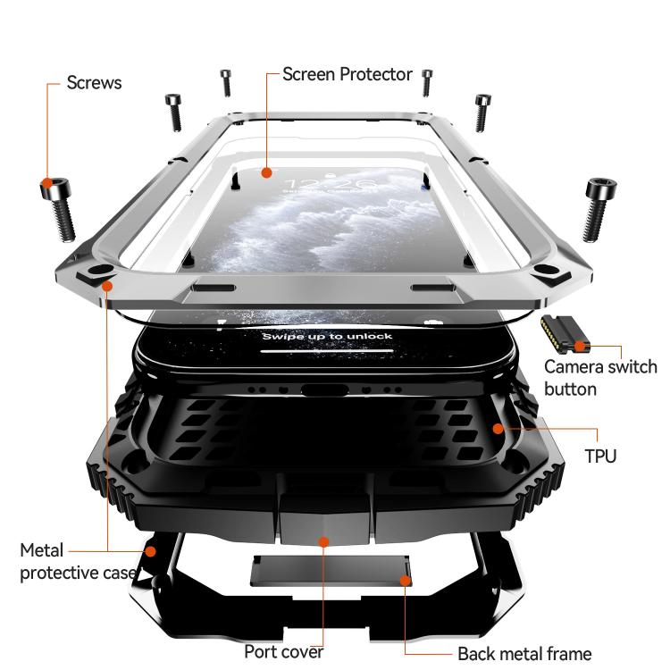 Funda R-JUST de metal, silicona y vidrio templado para iPhone Air, resistente al agua y con soporte (plateada)