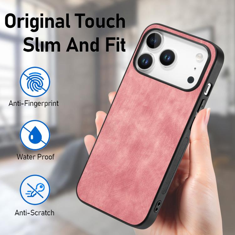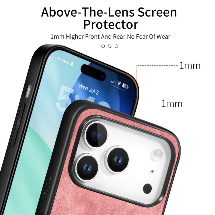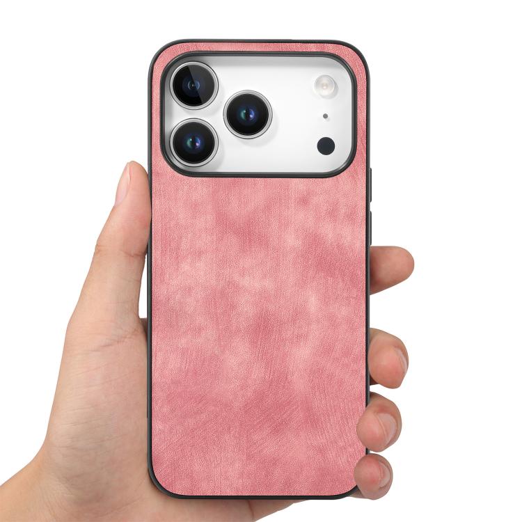 Funda trasera de PC de cuero vintage para iPhone 17 Pro (rosa)
