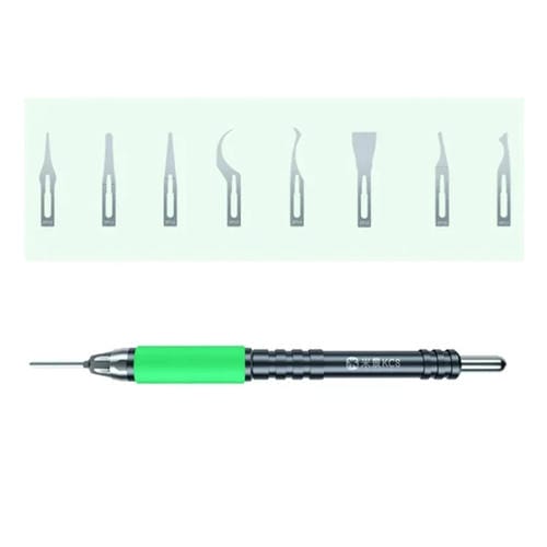 El Juego de Cuchillos de Mantenimiento Mijing KC8 es una herramienta profesional diseñada para la eliminación rápida y precisa de pegamento en tareas de mantenimiento técnico. Este kit es compatible con múltiples aplicaciones genéricas en la reparación de dispositivos electrónicos y otros equipos que requieran la remoción de Adhesivos resistentes. Cada cuchillo está fabricado con acero elástico de alto contenido de carbono, garantizando una alta dureza, tenacidad y resistencia a la corrosión, además de poseer un diseño ergonómico para un agarre cómodo y seguro. Su hoja, pulida a mano y con revestimiento de superficie al vacío, ofrece durabilidad ante altas temperaturas y resistencia al desgaste, facilitando la extracción de pegamento negro, Adhesivos laterales y restos en Placas Base o Discos duros.