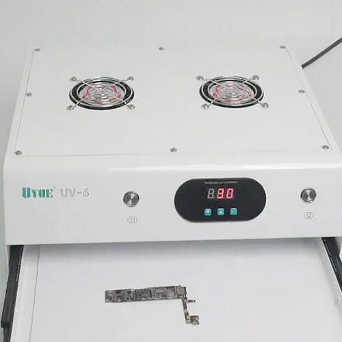 La lámpara de curado inteligente Uyue UV-6 es un equipo profesional diseñado para el curado eficiente y rápido de Pantallas de Teléfonos Móviles y Tablets de hasta 15 pulgadas. Este modelo incorpora tecnología de curado UV de alta Potencia con 72 perlas de luz, ofreciendo una cobertura total y un efecto de luz fuerte que garantiza un curado uniforme y sin arrugas. Su diseño incluye una Pantalla Digital para el control preciso del tiempo de curado y vacío, ajustable según el grosor del material, lo que la hace compatible con Pantallas curvas, rectas y Placas de Cubierta. Además, cuenta con tecnología de laminación al vacío y presión negativa, optimizando la adhesión y evitando deformaciones en las Pantallas durante el proceso de Reparación.