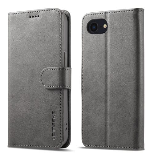 Funda de Piel Lc.Imeeke iPhone 16E Tapa Horizontal Textura de Becerro (Gris)