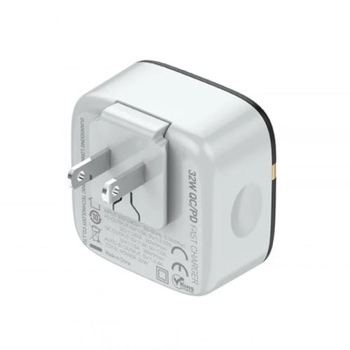 - Potencia total de 32W; salidas PD: 5 V/3 A, 9 V/2,22 A, 12 V/1,67 A (20 W máximo); control de calidad: 5 V/3 A, 9 V/2 A, 12 V/1,5 A (18 W máximo); salida AUTO-ID: 5 V/2,4 A; dimensiones: 5,6 x 5,6 x 3,25 cm