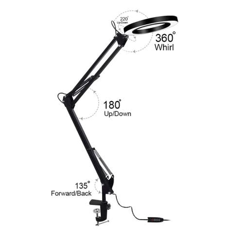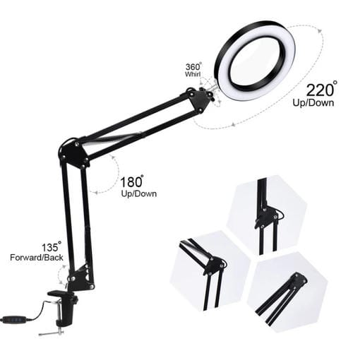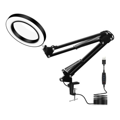 La Lupa de Mantenimiento Electrónico Led Light USB Plegable Protección de Ojos 5X-S (Negro) es una Herramienta especializada diseñada para facilitar trabajos de precisión en electrónica, joyería, lectura y cuidado personal. Esta lupa incorpora una Lente de 105 mm de diámetro con aumento 5X, ideal para inspeccionar Placas de circuito, Componentes pequeños y detalles finos. Está equipada con un sistema de iluminación LED de 72 luces SMD que ofrece tres modos de temperatura de color y once niveles de brillo ajustables para adaptarse a diferentes condiciones ambientales. Su diseño plegable y brazo telescópico con múltiples grados de ajuste permiten una colocación ergonómica y segura, mientras que el clip metálico facilita su fijación en superficies planas de hasta 6,5 cm de espesor. Compatible con diversas aplicaciones profesionales y de mantenimiento, esta lupa USB combina funcionalidad Técnica con protección ocular para usuarios que requieren alta precisión en sus tareas.