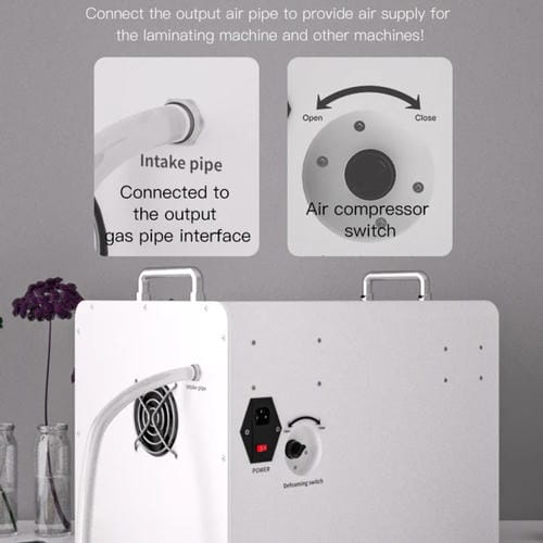Sí, además de eliminar burbujas, puede funcionar como compresor de aire para Máquinas laminadoras y otros dispositivos que requieran suministro de aire.