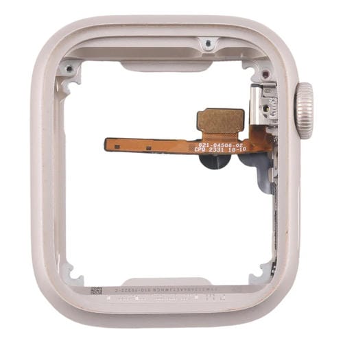 El Marco medio para Apple Watch Series 7, 8 y 9 (41mm) GPS está fabricado en aleación de aluminio, diseñado específicamente para reemplazar la Placa de Bisel central del dispositivo. Incluye el eje giratorio de la Corona con Cable Flexible, componentes esenciales para el correcto funcionamiento del control rotativo del Reloj. Este recambio es compatible exclusivamente con los modelos GPS de 41 mm de las mencionadas series y permite restaurar la integridad estructural y funcional del Apple Watch cuando la Cubierta Original está dañada o presenta fallos. Su instalación requiere conocimientos técnicos adecuados para asegurar un ajuste perfecto y funcionamiento óptimo.