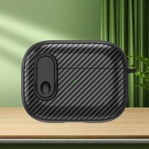 Estuche Para Auriculares Inalámbricos Airpods Pro 2 Textura Fibra De Carbono Bloqueo De Seguridad (Negro)
