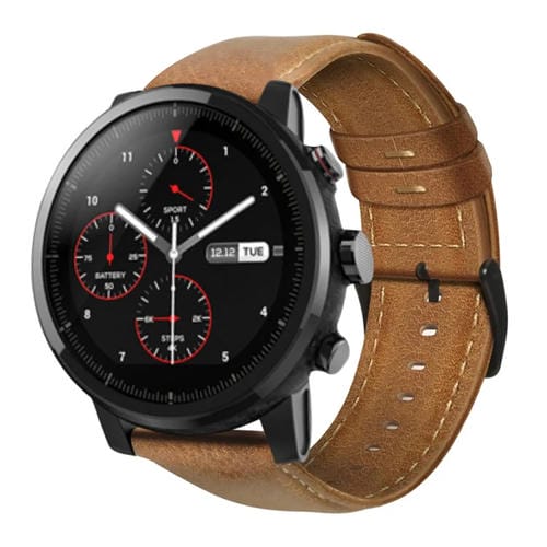 Correa de Reloj Amazfit 2 Stratos Cuero Genuino con Cera de Aceite (Marrón Amarillo)
