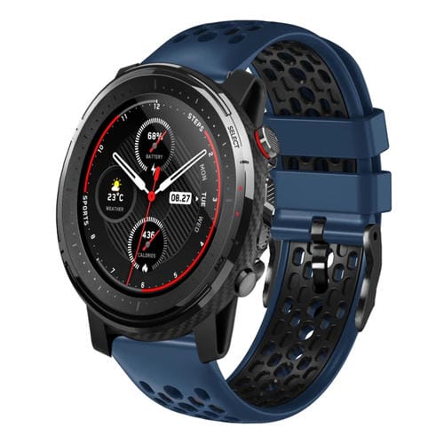 Correa de Reloj para Amazfit 3 22mm Silicona Transpirable Dos Colores (Azul Medianoche + Negro)