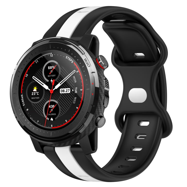 Correa de Reloj Amazfit 3 22mm Silicona Hebilla de Mariposa Dos Colores (Negro + Blanco)