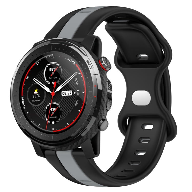 Correa de Reloj para Amazfit 3 22mm Silicona Dos Colores con Hebilla de Mariposa (Negro + Gris)