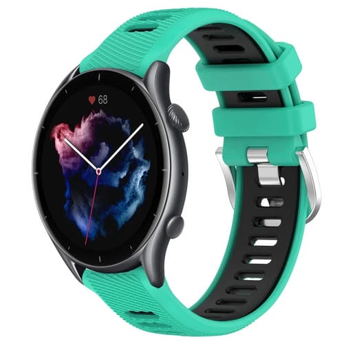 Correa de Reloj para Amazfit 3 de Silicona con Hebilla de Acero 22mm (Azul Lago + Negro)