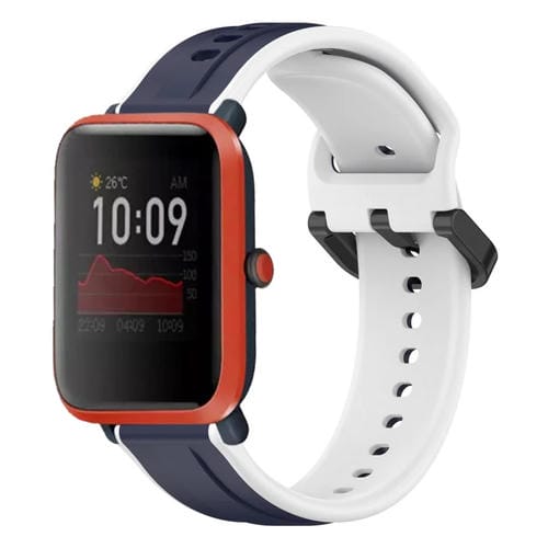 Correa de Silicona para Amazfit Bip 1S 20mm con Bucle Convexo (Azul Medianoche + Blanco)