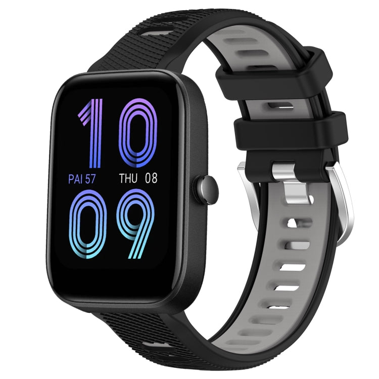 Correa de Reloj Amazfit Bip 3 22mm Textura Cruzada Silicona con Hebilla de Acero (Negro + Gris)
