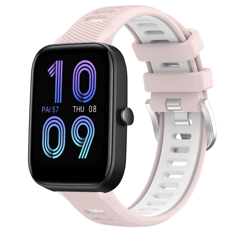 Correa de Reloj Amazfit Bip 3 22mm Textura Cruzada Silicona Hebilla Acero (Rosa + Blanco)