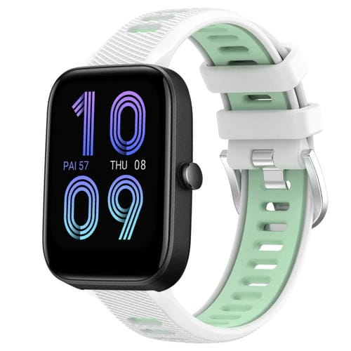 Correa de Reloj Amazfit Bip 3 Silicona Dos Colores Hebilla Acero 22mm (Blanco + Verde Azulado)