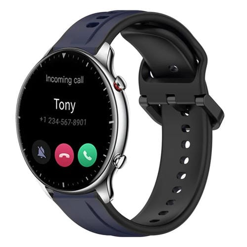 Correa de Silicona para Amazfit GTR 2 22mm con Bucle Convexo (Azul Medianoche + Negro)