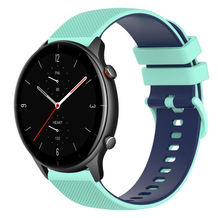 Correa de Reloj Amazfit GTR 2E 22mm Silicona Dos Colores a Cuadros (Verde Azulado + Azul)