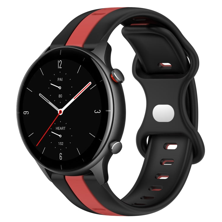 Correa de Silicona para Amazfit GTR 2E 22mm con Hebilla de Mariposa Dos Colores (Negro + Rojo)