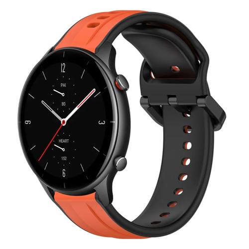 Correa de Silicona para Amazfit GTR 2E 22mm Bucle Convexo (Naranja + Negro)