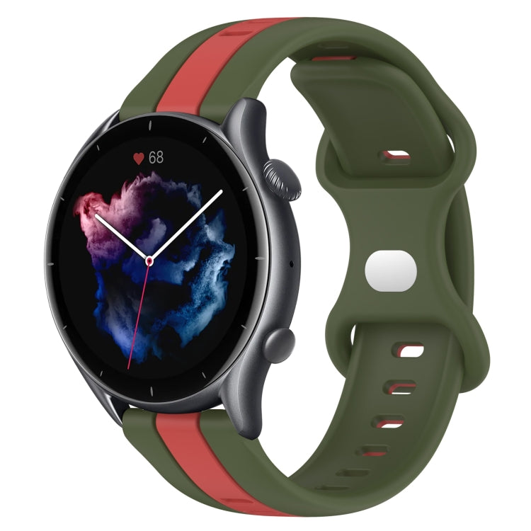 Correa de Reloj para Amazfit GTR 3 Pro 22mm Silicona Dos Colores con Hebilla de Mariposa (Rojo + Verde Militar)