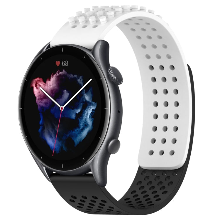 Correa de Reloj Silicona para Amazfit GTR 3 Pro con Puntos 3D Transpirables y Orificios 22mm (Blanco + Negro)
