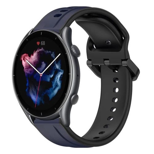 Para Amazfit Gtr 3 Pro Correa de Reloj de Silicona de Dos Colores con Bucle Convexo de 22mm (Azul Medianoche + Negro)