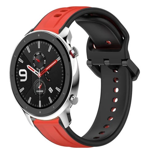 Para Amazfit Gtr 4 Correa de Reloj de Silicona de Dos Colores con Bucle Convexo de 22mm (Rojo + Negro)