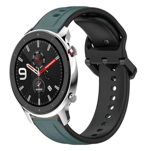 Correa de Reloj para Amazfit GTR 4 Silicona Dos Colores Bucle Convexo 22mm (Verde Oliva + Negro)