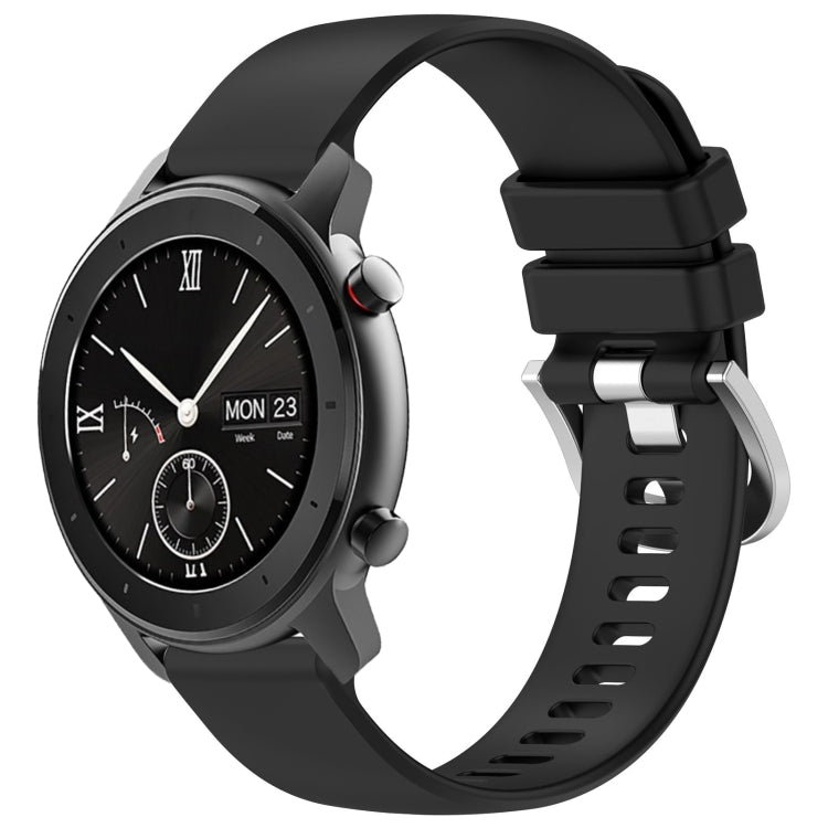 Correa de Reloj Silicona para Amazfit GTR 42mm y GTS 20mm con Hebilla Plateada (Negro)