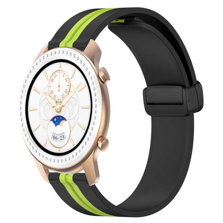 Correa de Reloj para Amazfit GTR 42mm 20mm Silicona con Cierre Magnético Plegable (Negro + Verde Lima)