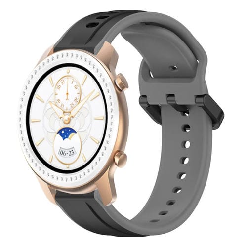 Correa de Silicona para Amazfit GTR 42mm 20mm Dos Colores con Bucle Convexo (Negro + Gris)