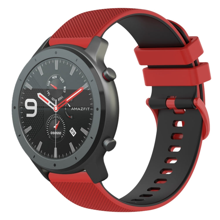 Correa de Reloj para Amazfit GTR 47mm 22mm Silicona Dos Colores a Cuadros (Rojo + Negro)