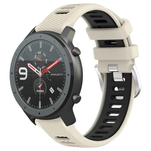 Correa de Reloj Amazfit GTR 47mm 22mm Textura Cruzada Silicona Hebilla Acero (Starlight + Black)