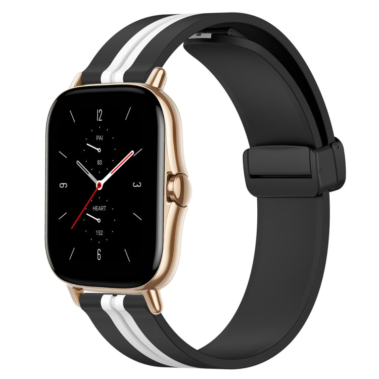 Correa de Reloj para Amazfit GTS 2 20mm Silicona con Cierre Magnético Plegable (Negro + Blanco)