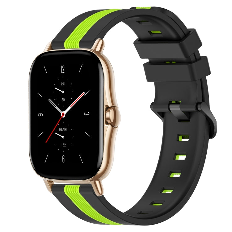 Correa de Silicona para Amazfit GTS 2 20mm Dos Colores Vertical (Negro + Verde Lima)
