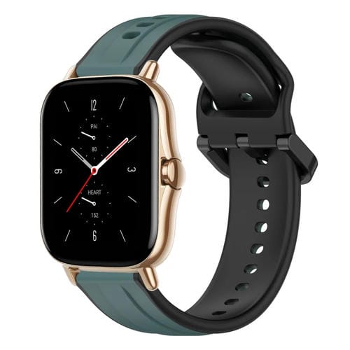 Correa de Silicona para Amazfit GTS 2 20mm con Bucle Convexo (Verde Oliva + Negro)