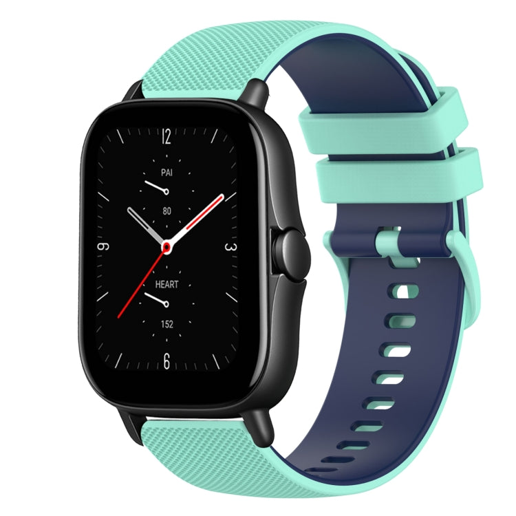 Correa de Reloj Silicona para Amazfit GTS 2E 20mm Dos Colores a Cuadros (Verde Azulado + Azul)