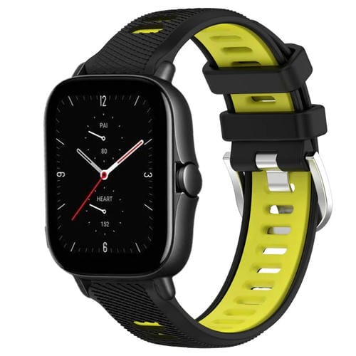 Correa de Reloj Amazfit GTS 2E 22mm silicona textura cruzada con hebilla acero (Negro + Verde Lima)