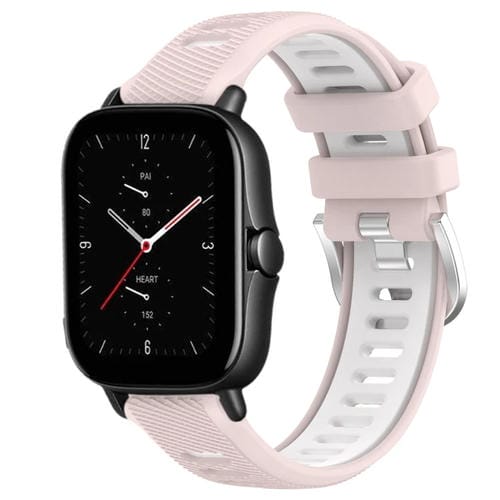 Correa de Reloj Amazfit GTS 2E 22mm silicona textura cruzada con hebilla acero (Rosa + Blanco)