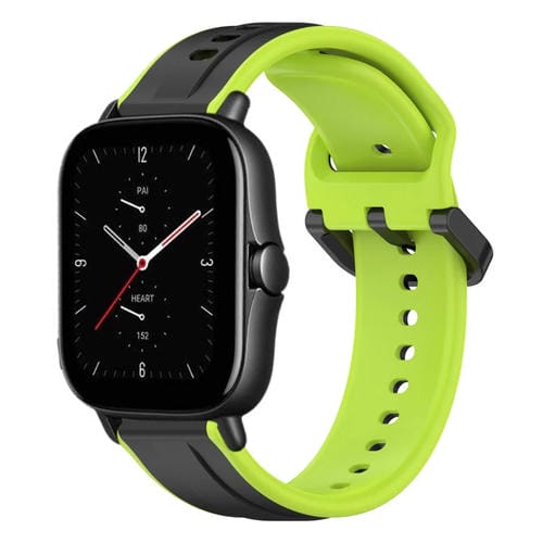 Correa de Silicona para Amazfit GTS 2E 20mm con Bucle Convexo (Negro + Lima)