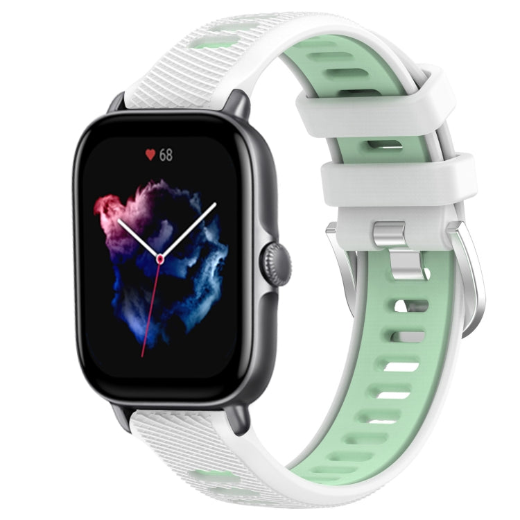 Correa de Reloj para Amazfit GTS 3 con hebilla de acero silicona dos colores textura cruzada 22mm (Blanco + Verde azulado)