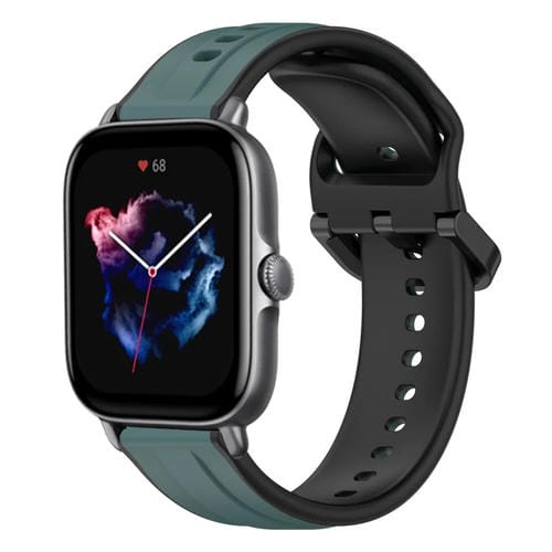 Correa de Reloj Amazfit GTS 3 Silicona Dos Colores Bucle Convexo 20mm (Verde Oliva + Negro)