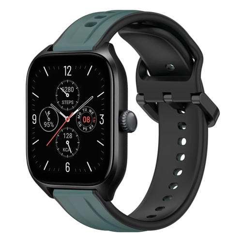 Correa de Silicona para Amazfit GTS 4 con Bucle Convexo de 20mm (Verde Oliva + Negro)