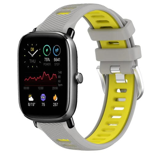 Correa de Reloj Amazfit GTS 4 Mini 22mm silicona textura cruzada con hebilla acero (Gris + Amarillo)