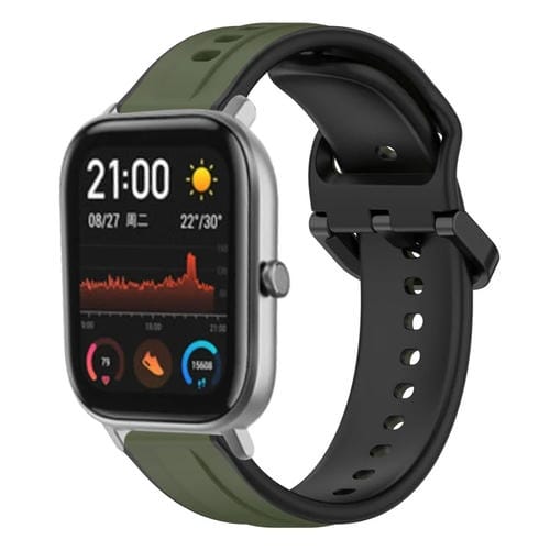 Correa de Silicona para Amazfit GTS 20mm con Bucle Convexo (Verde Oscuro + Negro)